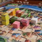 Obwohl man nur drei Aktionen ausführen kann, die jeweils drei andere Aktionen auslösen, gerät das Spiel grübeliger. Zentrales Element ist eine Pyramide aus bis zu 14 Aktionssteinen, die als Häuser in die Stadt gebaut werden und die bunte Vielfalt von Burano gut repräsentieren. Durch Dächer bekommt man Bonuskarten und kann in der nächsten Ebene bauen. Die Karten waren etwas unausgewogen verteilt, sodass wir nach dem Spiel noch über Lösungen dafür diskutiert haben.