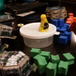 Ansonsten gelingt der Aufbau gut, in der Anleitung hilft ein QR-Code, die richtige App herunterzuladen, denn die Schriftzeichen kann man nur schwer abtippen. Die App ist auf englisch und hat japanische Sprachausgabe, was dem Flavor des Spiels entspricht. Bei der Bedienung der App habe ich nach dem ersten Spiel leider einen Fehler gemacht und das Spiel vorzeitig beendet, statt die Hilferunden zu überspringen. Manche Begriffe sind halt fast richtig ins englische übersetzt, und manche meinen es tatsächlich so. Aber man kann verschiedene Hilfen und Schwierigkeiten definieren.