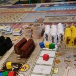 Orleans Invasion von dlp Games. Am Samstag spielten wir es zum ersten mal mit der Invasions-Erweiterung, welche das Spiel von konfrontativ auf kooperativ ändert. Im ersten Aufbau liessen wir zunächst alles so wie es kam und bekamen in den ersten zehn Runden so wenig geschafft, dass wir das Spiel abbrachen. Mit allen Einstellungen auf „einfach“ begannen wir eine zweite Partie und konzentrierten uns mehr auf Technik und Ritter um mehr Aktionen machen zu können. Kurz vor Schluss, als es komfortabel aussah, kam mit dem Ereignis „Ratten“ noch eine Resourcenknappheit. Fast wären wir daran gescheitert, aber es passte trotzdem noch.