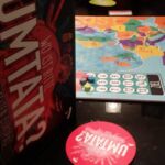 Wo bitte ist UMTATA? Das fragen sich regelmäßig Europatouristen und daher hat der Moses-Verlag dieses schöne Spiel gestaltet, dass abseits geografischer Gegebenheiten die Länder Europas in vier Gebiete und vier Farben zu je 12 Stück anordnet. Die rundenweise gezogenen Behauptungen („Das Staatsoberhaupt von UMTATA wird täglich von einem Musiker geweckt.“) ordnen bis zu 5 Spieler auf ihrer Drehscheibe einem Land zu. Für richtige Region oder Farbe gibt es je einen Punkt, sodass man manchmal auch mit Raten weiter kommt. Nach schnellen 15 Punkte ist schon Ende. Die Streberregel haben wir weggelassen, da etwas buggy.